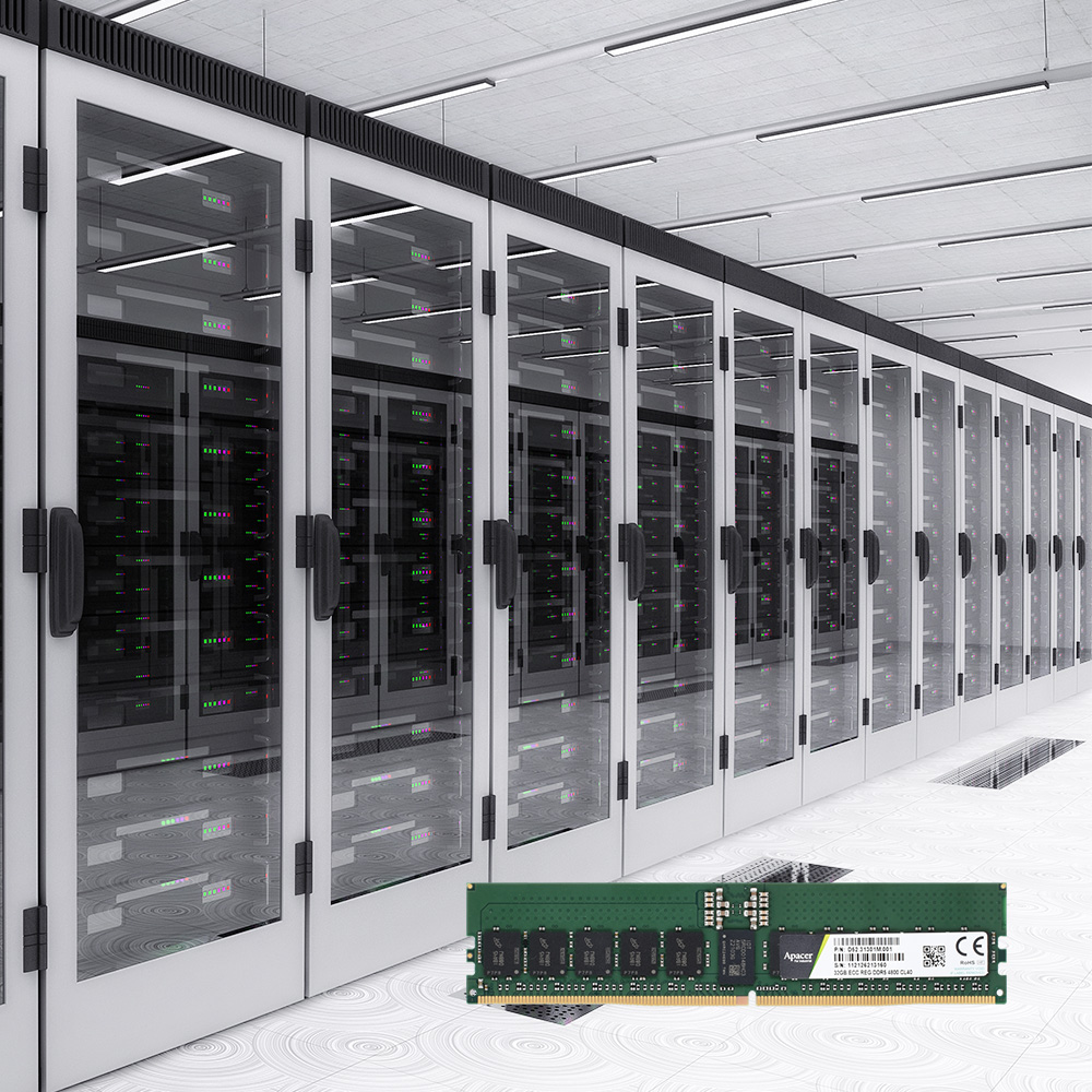 Apacer DDR5 RDIMM industrial-grade memory is equipped with a 12V power management IC and a high-precision temperature sensor, which can efficiently control the system power load, strengthen signal integrity and reduce interference. At the same time, they can monitor the memory temperature in real time, to prevent the risk of overheating and maintain high memory performance. It supports the dual error correction mechanism of On-die ECC and Side-band ECC, and also provides end-to-end complete protection for the data transmission process, satisfying the reliability, availability and maintainability requirements of the 24/7 operation of the data center.