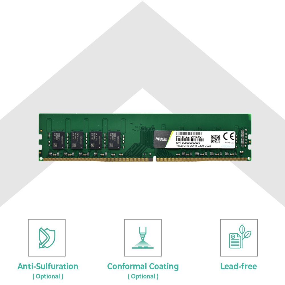 UDIMM (Unbuffered DIMM) is a JEDEC-compliant design applicable for desktop computers, industrial computers and embedded systems. Manufactured with the highest quality original DRAM chips, stringently tested for quality assurance and verified for compatibility, Apacer UDIMMs are high performance memory modules that are highly stable and compatible.