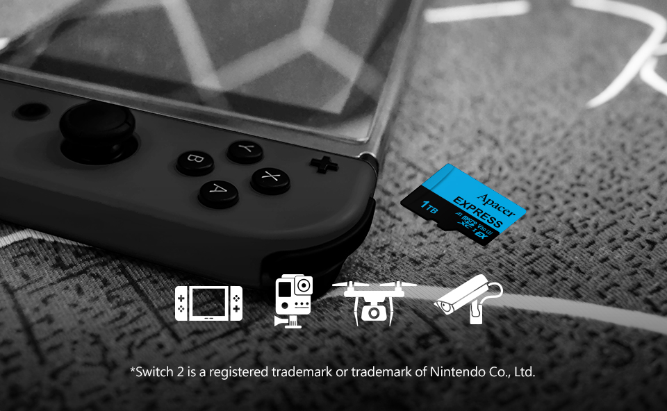 Apacer microSD Express is compatible with Switch 2*, handheld consoles, and mobile devices, delivering a smoother and more enjoyable user experience.