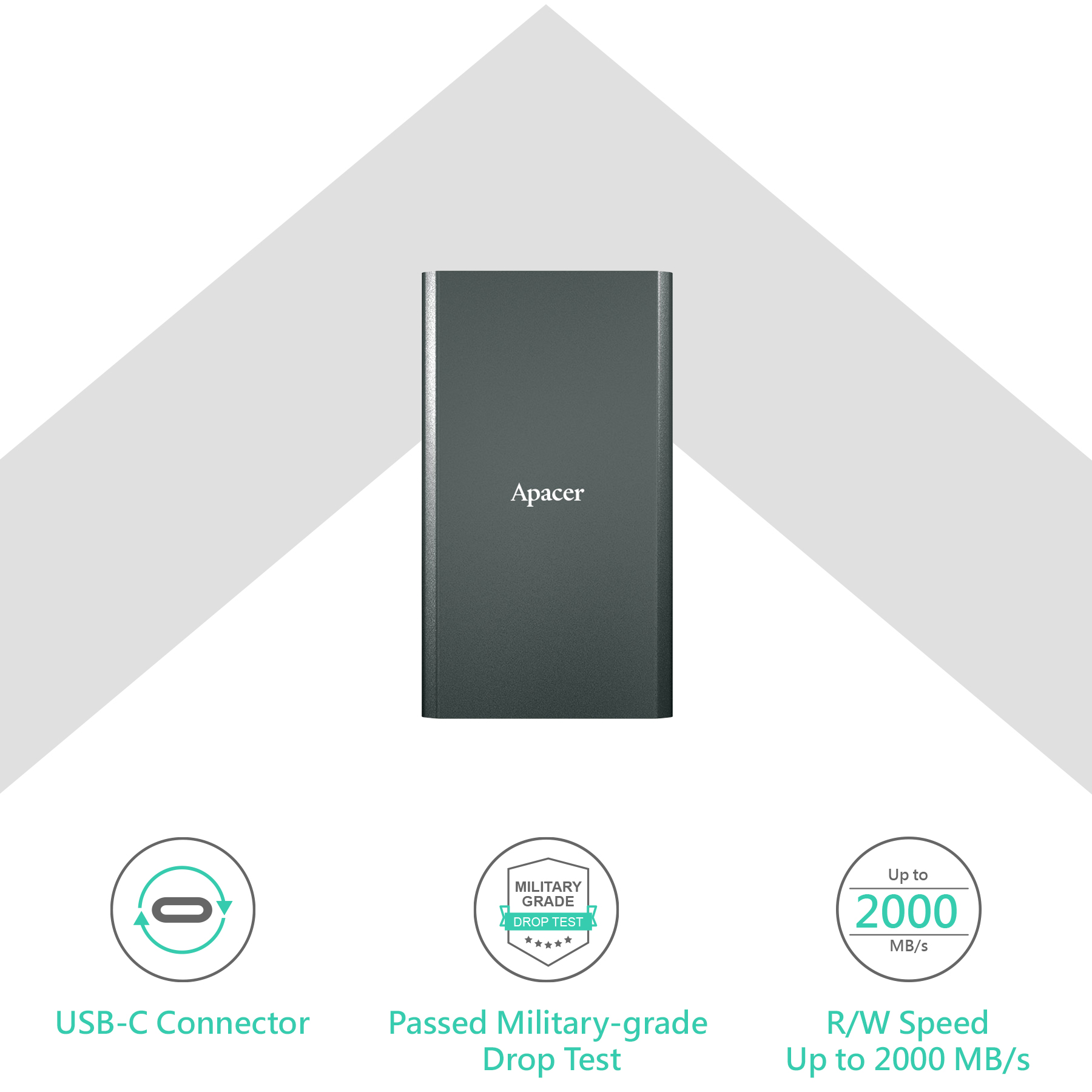 The AS723 have passed MIL-STD-810G 516.6 Procedure IV (Transit Drop Test), meaning no data is corrupted when it is dropped from a height of 1.22 meters. With a special anti-vibration structure, it can reduce vibrations while minimizing the impacts caused by accidental movements.